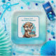 Otter azul y turquesa con platos de papel fiesta con temática de pastel de cumpleaños. Unas nutrias personalizados con gorra de cumpleaños en azul y turquesa. Tema adorable para la fiesta de cumpleaños de un niño pequeño.
