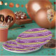 Añada el nombre y edad del niño de cumpleaños o del chica a estos coloridos platos fiestas que le dan un toque moderno a una franja celta. Utilice "Personalice esta plantilla" para ajustar el texto de "Elizabeth's 28th Birthday!" a su nombre, edad y evento preferidos. El texto blanco se sienta sobre rayas amarillas, lilas y moradas sobre una morada oscura.