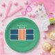 Platos creativos para fiesta de cumpleaños o evento deportivo de pickleball con cancha de pickleball y pelota. Para personalizar, edite el texto para agregar su nombre.