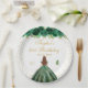 Este elegante y glamuroso plato de fiesta de cumpleaños incluye una hermosa princesa con el pelo rojo marrón y piel clara en un vestido de bolas verde. El texto combina el guión manuscrito y las fuentes sans serif modernas para un aspecto elegante y sofisticado. Los arreglos florales, las mariposas y los confeti dorados crean una perfecta mezcla de rústico y moda. Gráficos de www.etsy.com/uk/shop/SunflowerDayLove