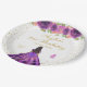 Este elegante y glamoroso plato de fiesta de cumpleaños presenta una hermosa princesa con el pelo oscuro y la piel oscura en un vestido de bola morada oscura. El texto combina el guión manuscrito y las fuentes sans serif modernas para un aspecto elegante y sofisticado. Los arreglos florales, las mariposas y los confeti dorados crean una perfecta mezcla de rústico y moda. Gráficos de www.etsy.com/uk/shop/SunflowerDayLove