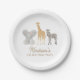 Añade un toque final a la decoración de tu fiesta de cumpleaños con estos platos de papel de temática safari, con tipografía de oro y adorables animales de safari para bebés.