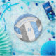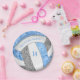 Estas placas de papel de la fiesta de cumpleaños de voleibol personalizado presentan la imagen de un voleibol estilizado con paneles azul claro, gris y blanco, sobre el cual se puede personalizar el texto - los paneles azules y grises del voleibol se mezclan con un patrón de kaleidoscópico floral de bonito para una apariencia texturada que es artística y ondulada - de katz_d_zynes
