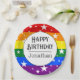 Añade algo de orgullo a tu fiesta de cumpleaños con estos platos de papel de la bandera arcoiris de personalizable.