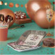 Ensillar y galopar para una divertida fiesta de cumpleaños a caballo. El fondo de una tabla de madera indica el interior de un establo con un panel sostenido por correas de abrochamiento. El panel de color crema está formado por un caballo que recorre una herradura para dar la bienvenida a los clientes a un día de diversión con caballos. Un par de botas rosas y un gorra de vaquero se colocan hacia el fondo del plato con adornos de estilo occidental que acentúan el diseño. Disponible con productos a juego.
