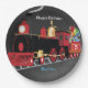 Platos de papel para fiestas de cumpleaños personalizados para niños con antecedentes de tren y pizarra. Invitación de cumpleaños coincidente https://www.zazzle.com/train_childrens_birthday_chalkboard_invitation-256590136487904830