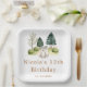 Plato de papel rústico para fiestas de cumpleaños con adorables lobos y árboles. Perfecto para una fiesta de cumpleaños de primavera o verano. Las palabras se pueden cambiar para adaptarlas a sus propios detalles o requisitos