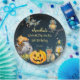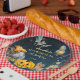 Halloween espeluznante espeluznante fiesta de cumpleaños tableware plancha personalizada de plantilla, calabaza de Halloween, murciélago, búho, gato, cacerola estrellada noche cielo negro fondo.
