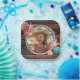 Trae el encanto de la playa occidental a la celebración de tu pequeña vaquera con estos platos de papel personalizados para fiesta de cumpleaños con fotos. Con un fondo de madera rústica, detalles de marco de cuerda y delicados acentos de estrellas de mar y conchas marinas, este diseño combina la dulzura costera con un toque occidental juguetón.
