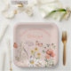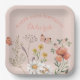 Diseño de flor salvaje para cumpleaños especiales. Platos florales de Boho para fiestas de cumpleaños con flores naturales femeninas y delgadas hacen de este el sitio ideal para fiestas de cumpleaños. Las flores silvestres de color pastel y los colores de las mariposas incluyen el coral, el rosa rubor, el beige y el verde salado.