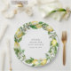 Sirve momentos dulces con estilo con este plato de papel para fiesta de despedida de soltera con tema de limón de Redwood & Vine Design Co. Con limones y vegetación en estilo acuarela en un borde circular con la frase “encontró a su media naranja”, este plato personalizado es perfecto para fiestas de verano, fiestas de jardín o celebraciones inspiradas en cítricos.