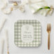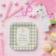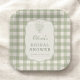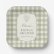 Platos de papel para fiesta de despedida de soltera diseñados con un suave patrón de cuadros en verde menta. El estilo limpio y clásico combina bien con temas de despedida de soltera inspirados en el jardín y atemporales. Adecuados para despedidas de soltera, almuerzos y celebraciones previas a la boda. Texto totalmente personalizable con un diseño listo para imprimir para la vajilla de la fiesta.