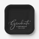 Plato De Papel Fiesta de Graduación Negra Elegante con Letra Blan