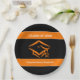 Plato De Papel Fiesta de graduación negra y anaranjada del