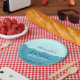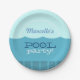 El plato de papel Fiesta de la piscina con agua azul es ideal para cualquier reunión junto a la piscina. © Morning 6