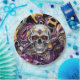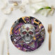 Día de Muertos o placas de papel de la fiesta de Halloween con oro negro, púrpura y con cráneo de azúcar.