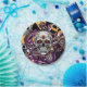 Día de Muertos o placas de papel de la fiesta de Halloween con oro negro, púrpura y con cráneo de azúcar.