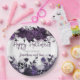 Un espléndido plato de fiesta de halloween con flores moradas. Este gótico de diseño morado y negro tiene flores y cráneos. Fácil de personalizar con su propio mensaje fiesta con temática de halloween.