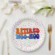 Toallas coloridas para la jubilación con texto groovy y confetti. La idea de la decoración fiesta personalizado.
