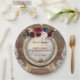 Diseño romántico y trendy con flores de color burdeos en acuarela, esquinas de encaje rústico vintage, barril de vino y luces de cuerda; en la parte posterior iniciales y ramo floral, todo sobre fondo de granero antiguo. Utilice la herramienta Personalizar para agregar su información. Para artículos coincidentes, visite mi Colección de Fiestas de Jubilación. Para artículos coincidentes, visite mi Colección de Fiestas de Jubilación.