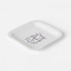 Qué plato de papel maravilloso y personalizado para un Fiesta de retiro feliz. El fondo es blanco, el monograma es gris, el nombre es berenjena morada. Elija cuadrado o redondo. Todos los derechos reservados © 2025 Alan & Marcia Socolik.