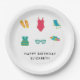 Platos fiestas personalizados fiestas de piscina. Platos de papel temático de verano, sencillos y modernos para el cumpleaños. Diseñado e ilustrado con amor por Kristine Lee www.kristineleedesigns.com