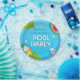 es moderno y divertido diseño de placas de fiesta de billar. Tiene agua azul flotante y elementos de hojas de ciruela. Todo el texto es fácilmente personalizable. Ideal para la fiesta de cumpleaños de verano, fiesta de la piscina y fiestas temáticas tropicales.