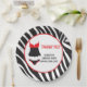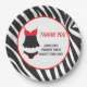 Plato de papel de agradecimiento para ducha de novia de Lencería Roja Traviesa o Buena con fondo de estampado de cebra. Una forma ideal de impresionar a sus invitados cuando les entregue esos bocadillos y agradecerles por asistir a su evento. El texto se puede cambiar para adaptarse a sus necesidades.