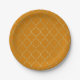 Plato De Papel Fiesta de Patrón de Cuatrefoil de Amarillo y Dorad