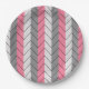 Plato De Papel Fiesta de rayas de chevron rosadas negras