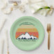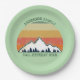 Placas de papel para reuniones familiares de personalizados de Guay para una cabaña de otoño o reunión al aire libre con primos, tías, tíos y abuelos. Invite a toda la tripulación con su apellido y año en verde alrededor de la hermosa imagen de puesta de sol de otoño sobre las montañas y los árboles. Excelente placa de fiesta de camping grupal personalizada.