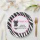 Plato de papel Gracias Fiesta de Despedida de Soltera Ropa Interior Rosa Brillante Malo o Bueno con fondo de estampado de cebra. Una forma ideal de impresionar a tus invitados cuando les entregas esos bocadillos y agradeciendo su asistencia a tu evento. El texto se puede cambiar para adaptarse a tus necesidades.