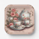 Plato De Papel Fiesta de té de cumpleaños con flores rosadas vint
