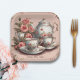 Plato De Papel Fiesta de Té de Cumpleaños de Jardín Floral Rosa V