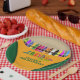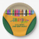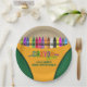 Placas del fiesta del creyón. Diseñado con una caja del estilo del creyón y un arco iris colorido de creyones. Las fuentes adicionales del fiesta del creyón están disponibles en Metro-Event.com y los Metro-Acontecimientos en Zazzle.