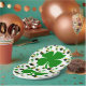 Este plato de papel diseñado clásicamente presenta un duendecillo lindo, un trébol verde y una olla de oro. Un patrón divertido para tu fiesta del Día de San Patricio. Este plato de papel viene en dos tamaños para aperitivos o postres o un plato más grande para la cena.