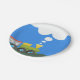 Estas placas durables ofrecen un tren del motor de vapor en un humo que sopla de la colina en el aire. Esta placa temática del fiesta del tren sería grande para muchas ocasiones, incluyendo cumpleaños del niño.