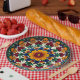 Trae la flor a tu buffet con Fiesta Floraframe, el plato redondo que es básicamente una corona de flores para tus tentempiés. Con una flor amarilla radiante en el centro rodeada de capas de pétalos rojos, verdes, azules y morados, este diseño es un caleidoscopio de color y simetría. La llanta externa se mezcla con motivos florales repetidos y puntos blancos delicados, todo ello contra un lienzo cerámico fresco que hace que cada tamale parezca una obra maestra. Perfecto para las muestras de pan de Muerte, salsa o caramelos que se desvanecen misteriosamente. Sin texto, sin alboroto, solo pura alegría Día de los Muertos en cada mordida. Ya sea que estés organizando una fosa al borde del altar o que simplemente quieras que tu mesa grite "celebración", este plato ofrece con estilo.