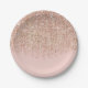 Plato De Papel Fiesta Glam Brillante Rosa y Dorado Rosado