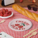 Cherry Eligió Platos Retro De Fiesta Gráfico De Frutas. (el color de fondo se puede cambiar con el selector de color)