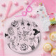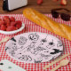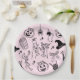 Fije el tono para una elegante y espeluznante fiesta de Halloween para adultos con este plato de fiesta rosa, con gafas de martini, esqueletos de baile, fantasmas y ilustraciones de estilo vintage.