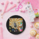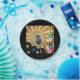 Diseño para un fiesta de karaoke con micrófono en un fondo colorido. Este diseño parece realmente efectivo en estas Placas de papel