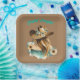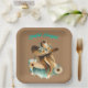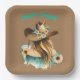 ¡Placa de papel fiesta cuadrada Costera Cowgirl! Fondo marrón que muestra la cabeza trasera de una vaquera con un gorra occidental marrón y flores de color pastel. ¡Gran tema para la fiesta temática de la vaquera costera occidental! Ve otros programas de mesa coincidentes en este tema.
