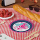 Platos de fiesta de temática occidental con una vaquera montando un balancín con guarnecido de bandana rosada. Vea este y otros diseños similares en otros suministros de fiesta en el Rodeo Days Store.