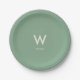Platos de papel de fiesta personalizados con fondo verde menta, monograma grande centrado y nombre asociado. Tipografía minimalista limpia y simple. Totalmente personalizable.
