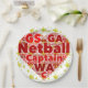 Las placas de papel del fiesta temático del netball de la diversión con la estrella diseñan. Fuentes del fiesta del diseño del arte de la palabra del Netball.