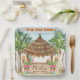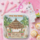 Los platos de papel cuadrados con tema de luau tropical presentan un bar Tiki en la playa con estilo de acuarela (completo con un loro y cócteles) enmarcado por palmeras, antorchas Tiki y tótems con las leyendas "It's Tiki Time" y Aloha en fuentes de estilo isleño. El texto se puede personalizar (por ejemplo, se muestra aquí con dos nombres como si fuera para una ducha de pareja, pero podría personalizar el texto y cambiarlo a "Happy Birthday Marley", o lo que se adapte a su celebración). Perfecto para bodas, duchas, cumpleaños, aniversarios o cualquier celebración con tema isleño. Arte de KL Stock.