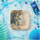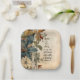 La cita inspiradora de las escrituras de la placa de papel cuadrado representa un diseño botánico de la naturaleza con hermoso oro de otoño, naranja quemado y hojas verdes sobre un fondo de bronceado. Presenta una parte de una Biblia motivadora Verse Philippians 4:13, "Puedo hacer todas las cosas a través de Cristo".