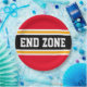 Este diseño deportivo, atlético, presenta texto en negrita END ZONE dentro de una franja negra ancha resaltada con doble franjas de carreras blancas y amarillas contra rayas exteriores brillantes rojas. El texto de este diseño se puede personalizar.