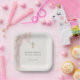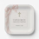 Elegant First Holy Communion paper plates featuring a soft pink coquette bow design for a graceful and feminine celebration. Perfect for dessert tables, place settings, and party displays honoring your daughter special sacrament. Ideal for coordinating with communion invitations and party decor. High quality print.